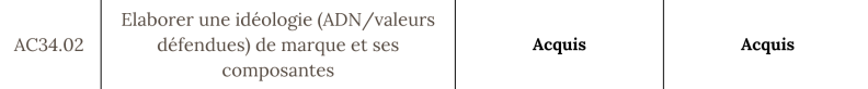 AC34.02 - Élaborer une idéologie (ADN/valeurs défendues) de marque et ses composantes