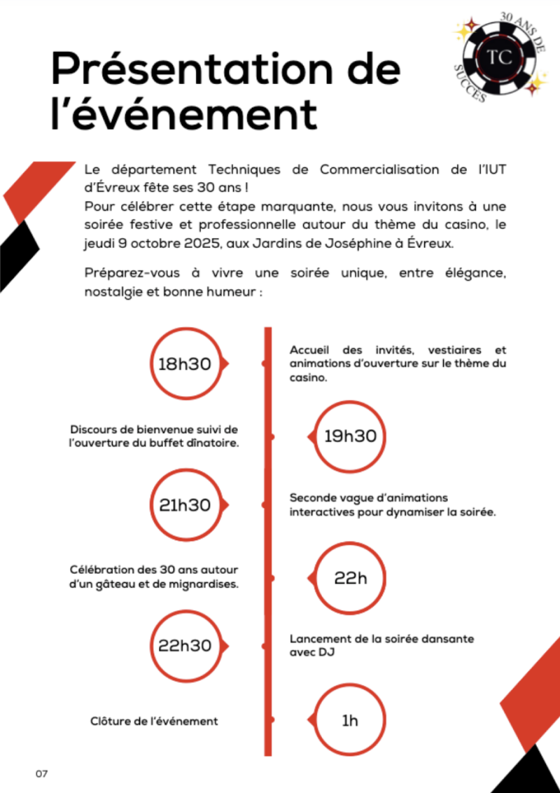 Nous avons réalisé le planning du jour J pour l’événement des 30 ans TC.